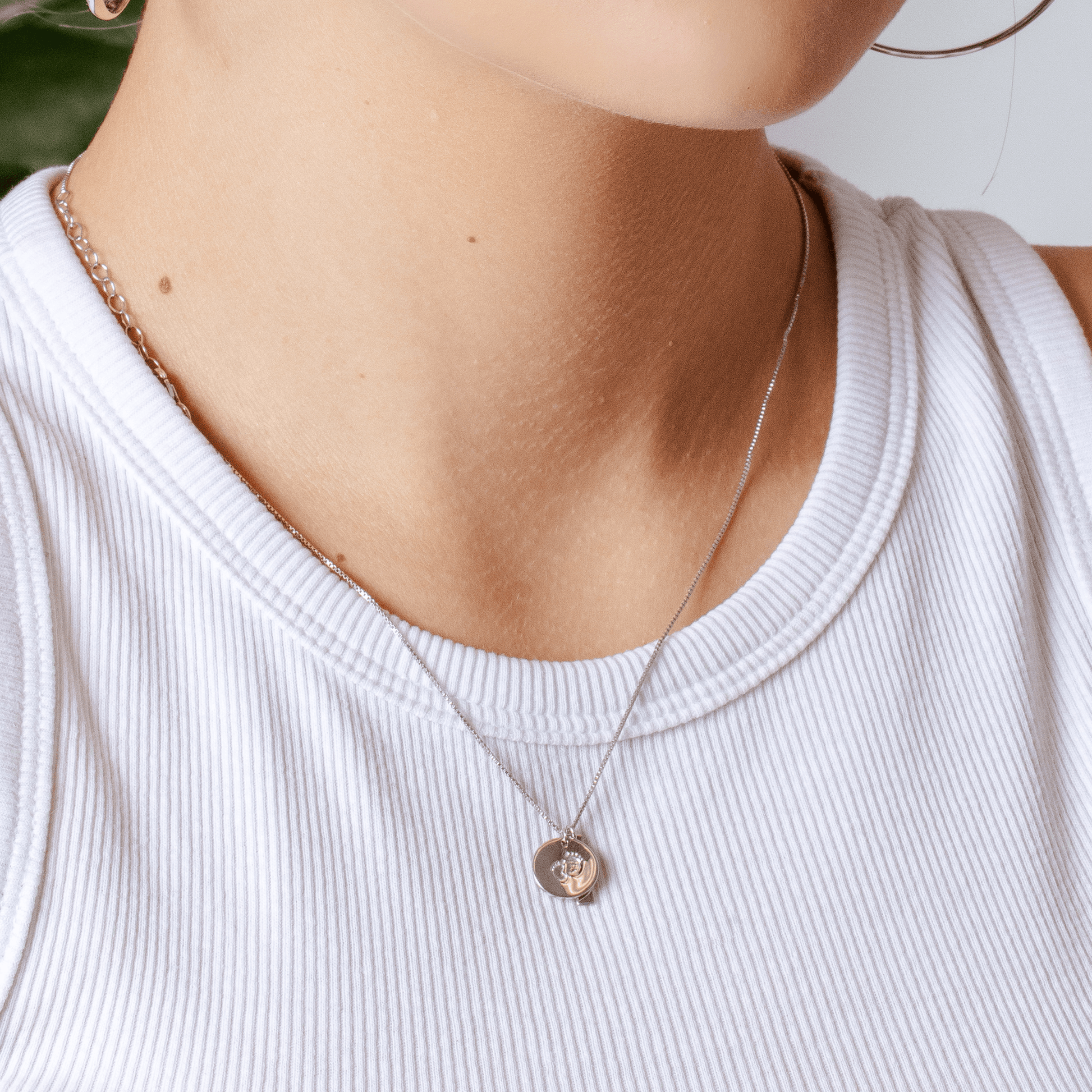 Rhodium Plated 925 Sterling Silver Disc Foot Print Box Chain Necklace - DIN00107RH