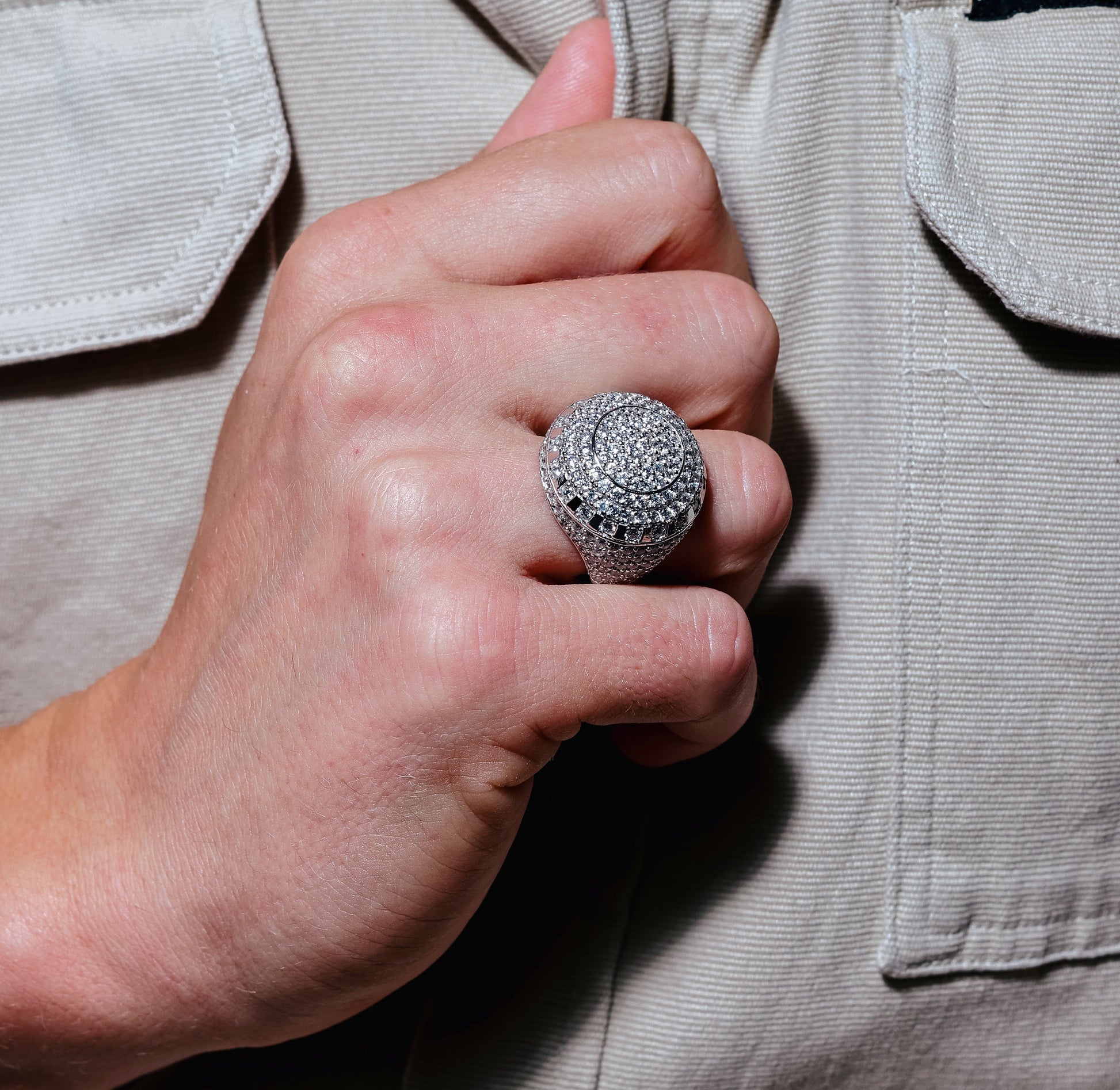 Wholesale Sterling Rhodium Plated 925 Sterling Silver Dome CZ Hip Hop Ring