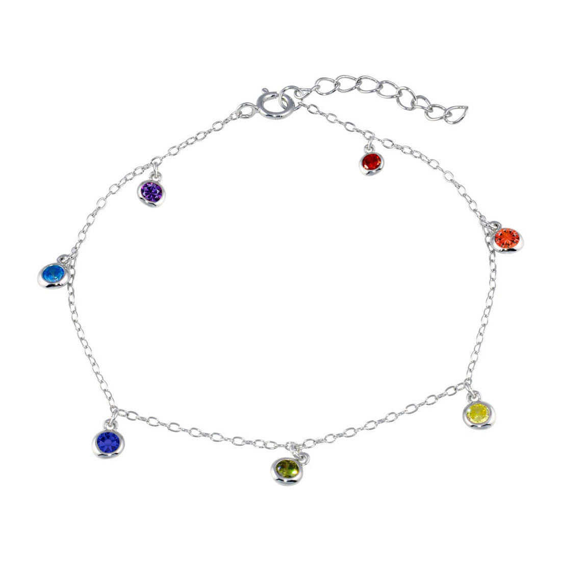 Rhodium Plated 925 Sterling Silver Multi Color CZ Bracelet - BGB00343