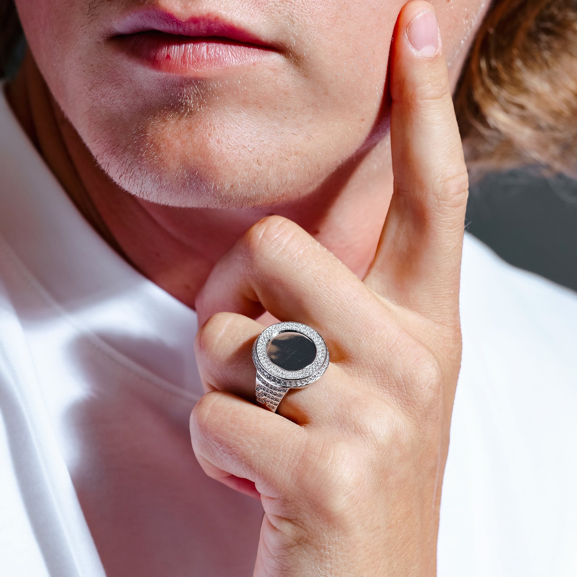 Rhodium Plated 925 Sterling Silver Round CZ Mirror Disc Ring - GMR00309