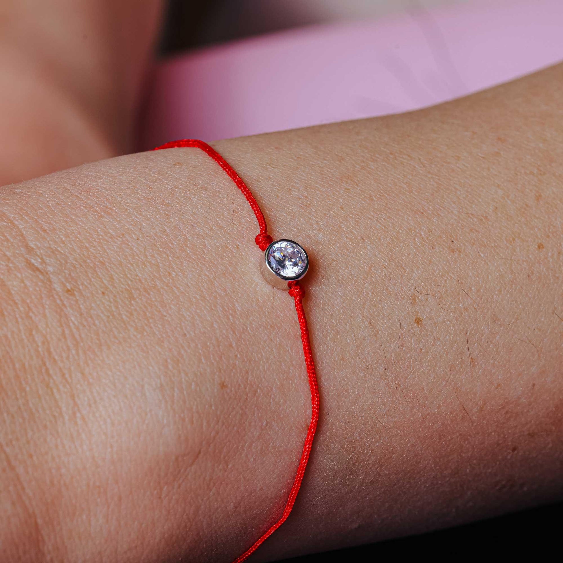 Wholesale Sterling Rhodium Plated 925 Sterling Silver Single CZ Red Cord Bracelet