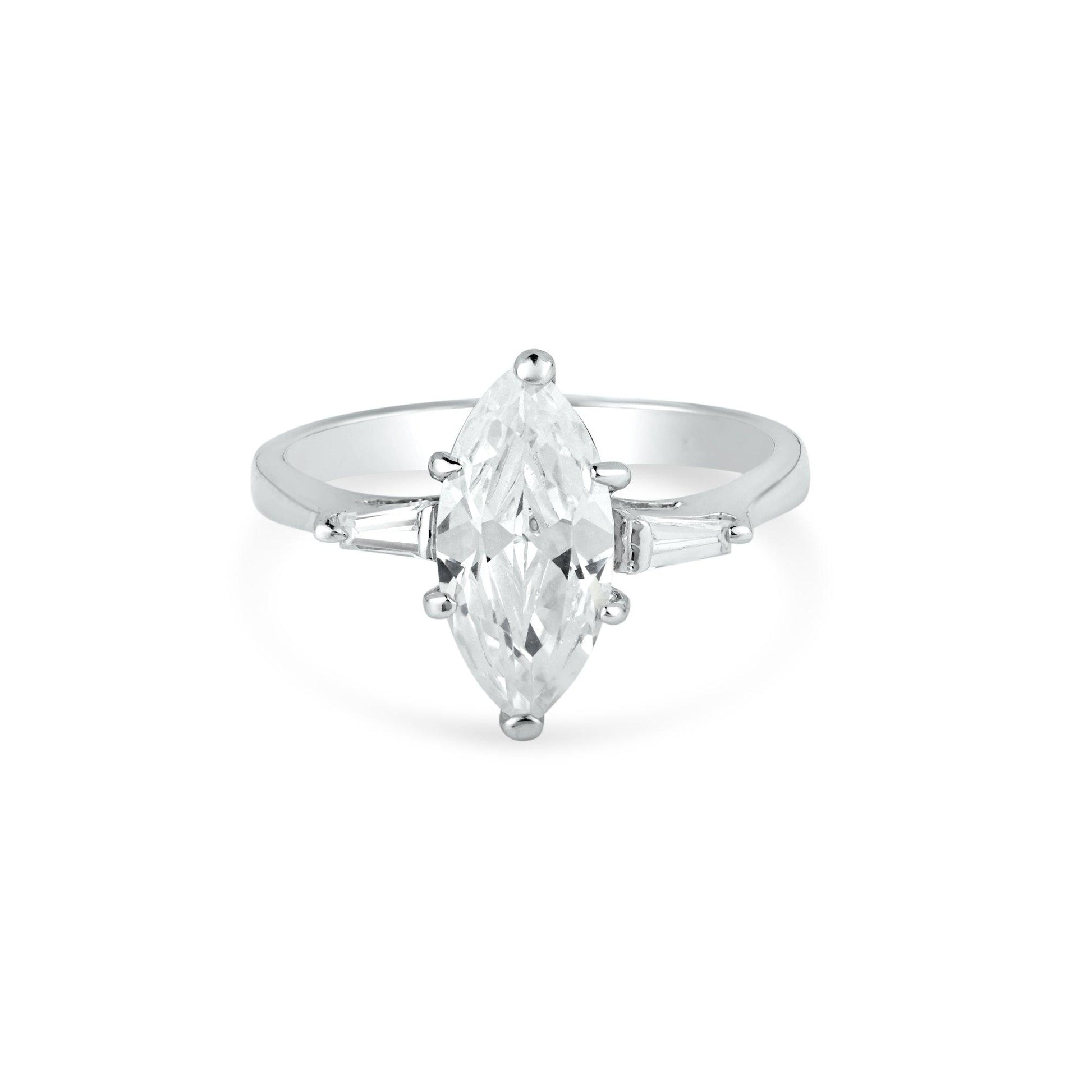 Stone | Center 1 clear 6mm x 10mm Marquise CZ - Side 2 clear 2mm x 3mm Baguette CZ |