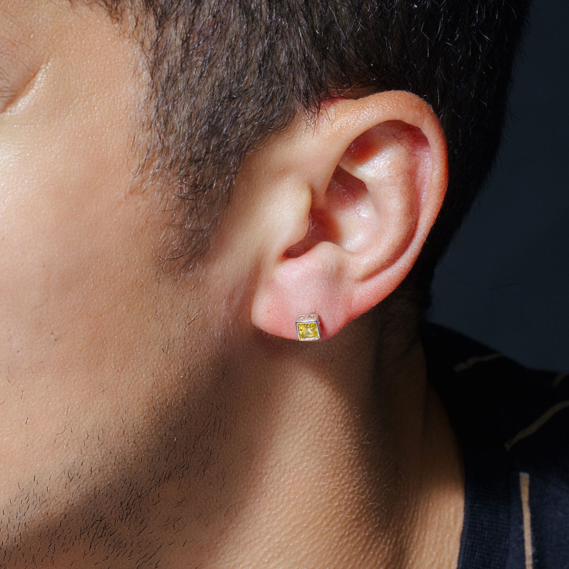 Indulge in luxury with our STEM151-5MM earrings. Made of wholesale sterling silver, these rhodium plated square yellow CZ stud earrings are a sophisticated addition to any outfit. Sparkle and shine with confidence, knowing you are wearing a premium product.