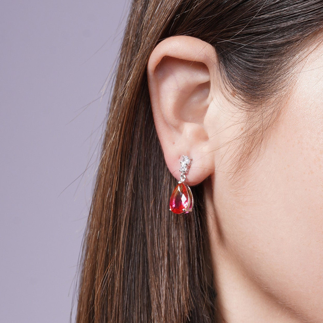 Rhodium Plated 925 Sterling Silver Teardrop Gradient Pink Orange CZ Set - BGS00590