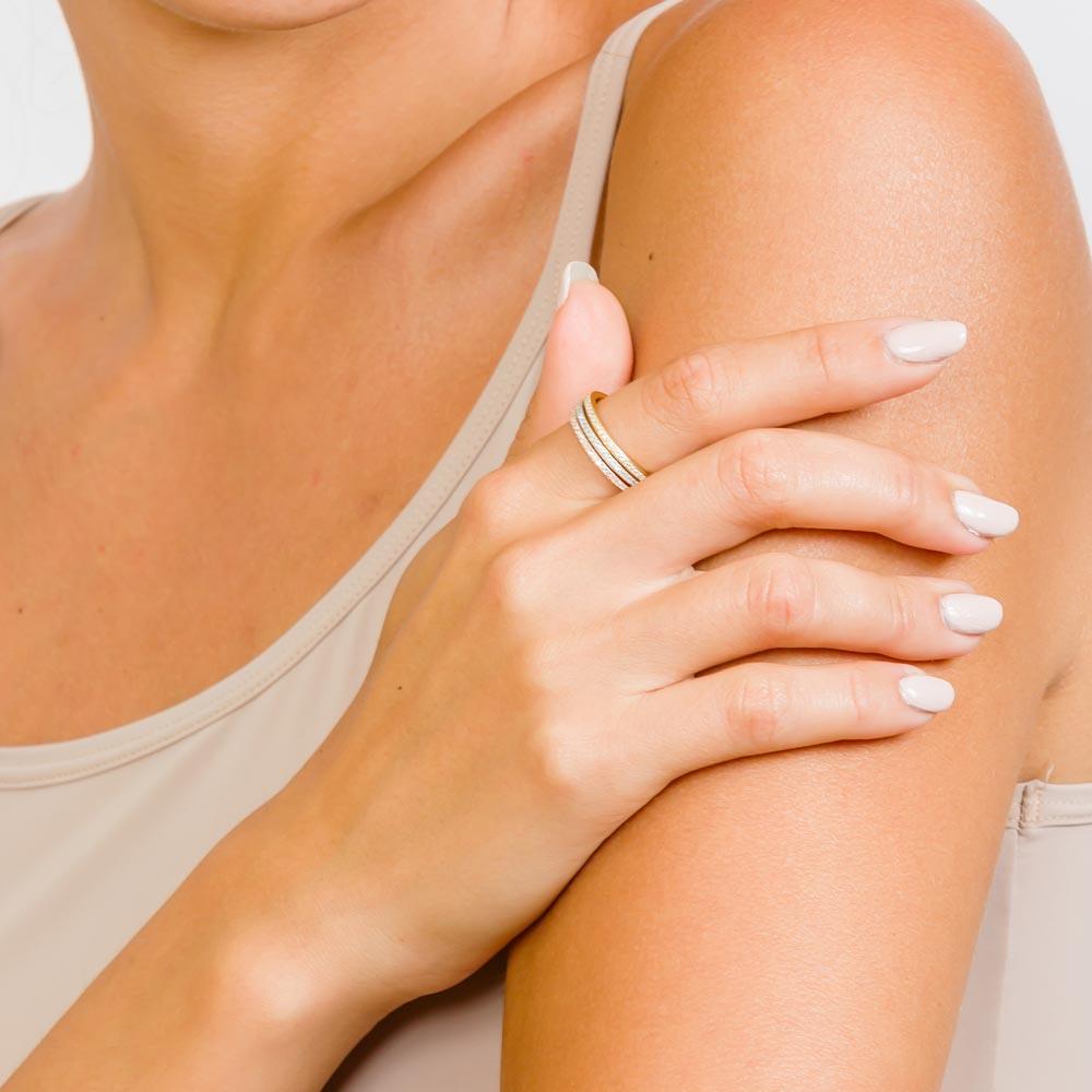 Wholesale Sterling Silver 925 Rhodium Plated Tri-Color Stackable CZ Inlay Ring