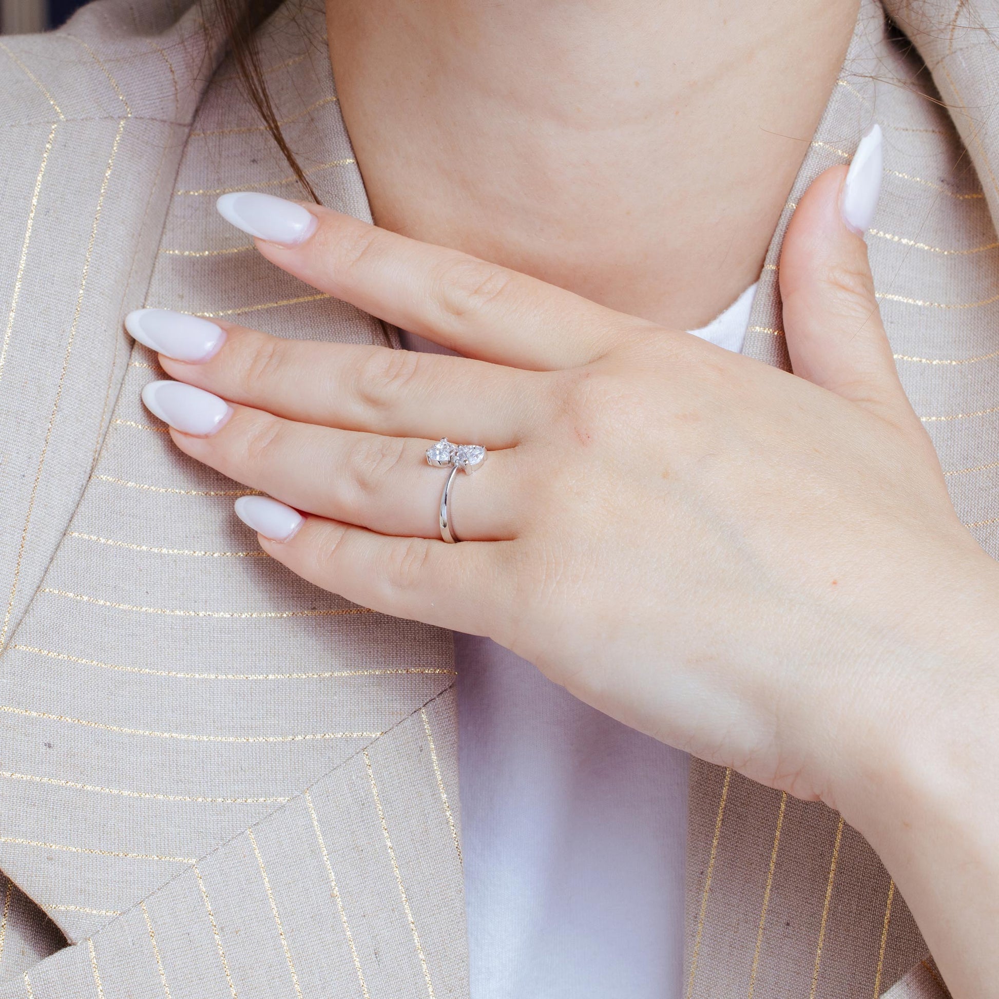 Wholesale Sterling Silver 925 Rhodium Plated Twin CZ Ring