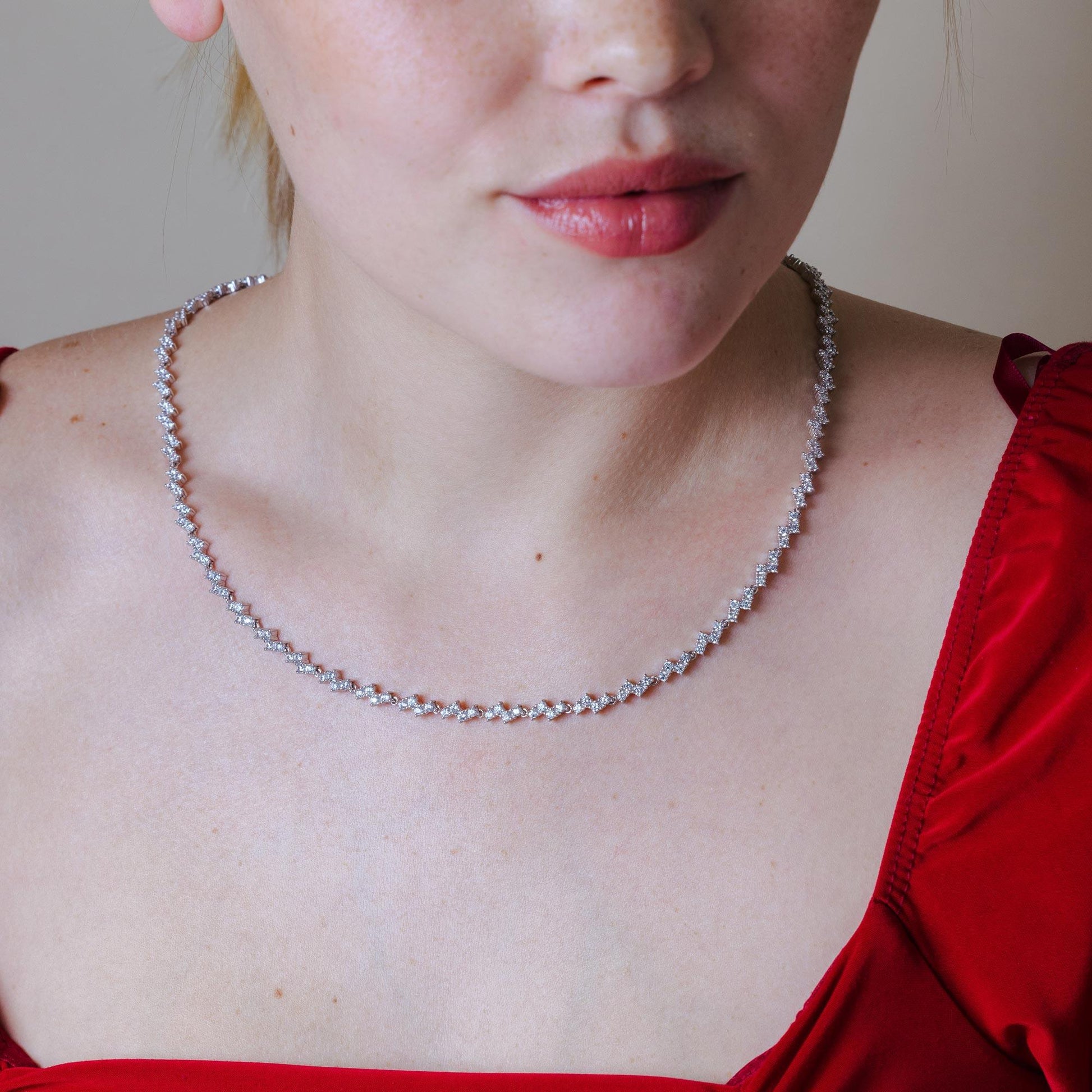 Wholesale Sterling Silver 925 Rhodium Plated Zig Zag CZ Tennis Necklace