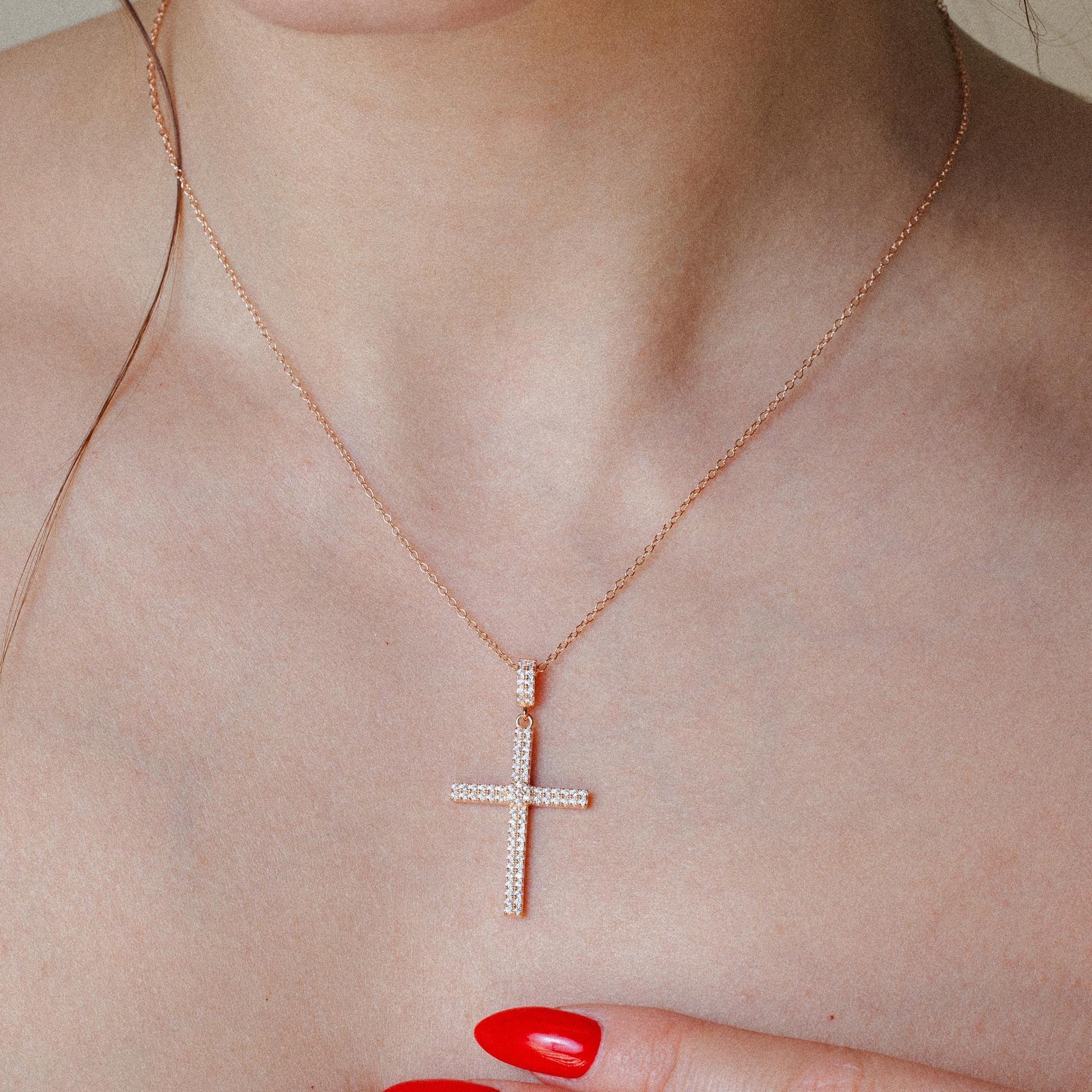 Wholesale Sterling Silver 925 Rose Gold Plated Cross Micro Pave CZ Dangling Pendant