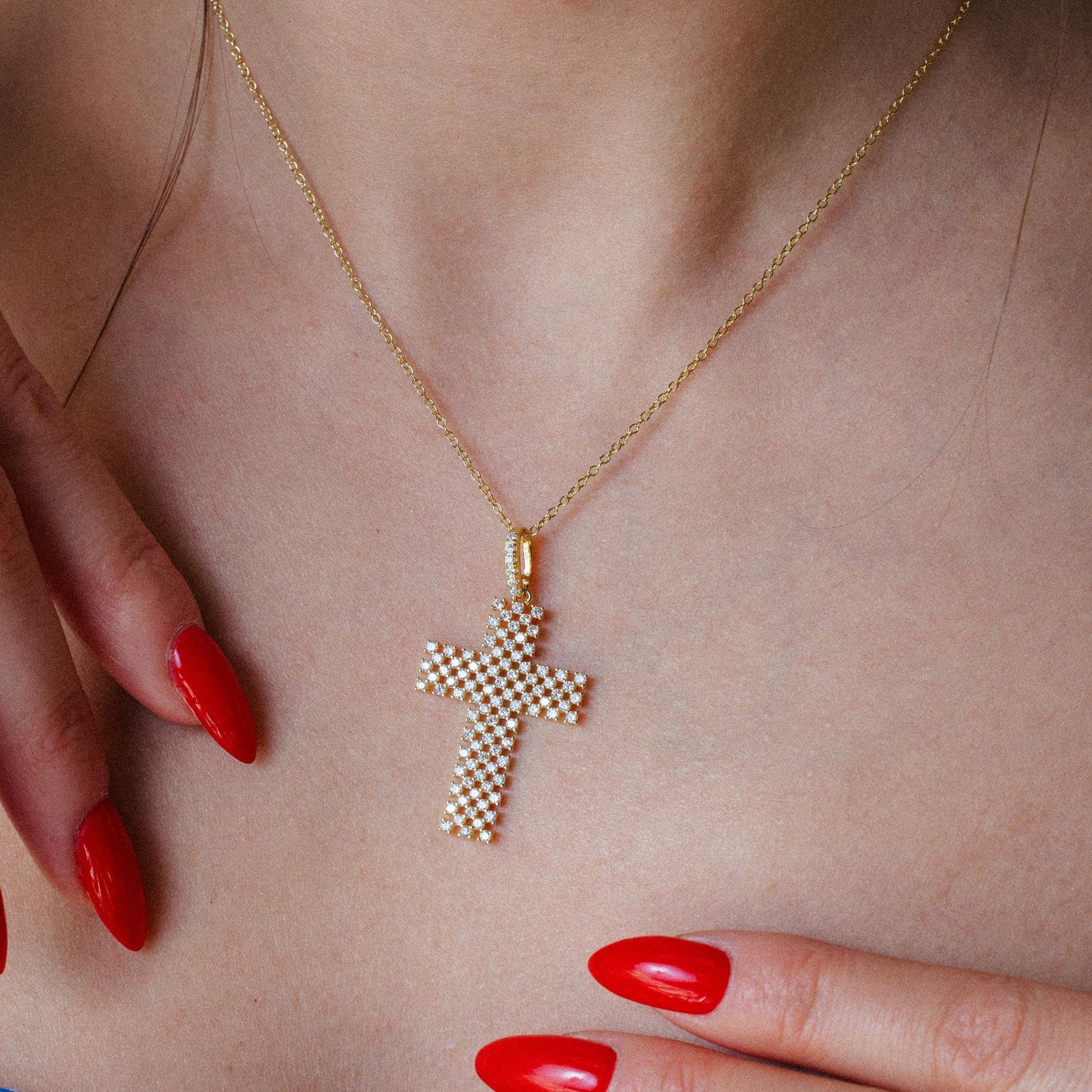 Wholesale Sterling Silver 925 Rose Gold Plated Open Checkered Cross CZ Pendant