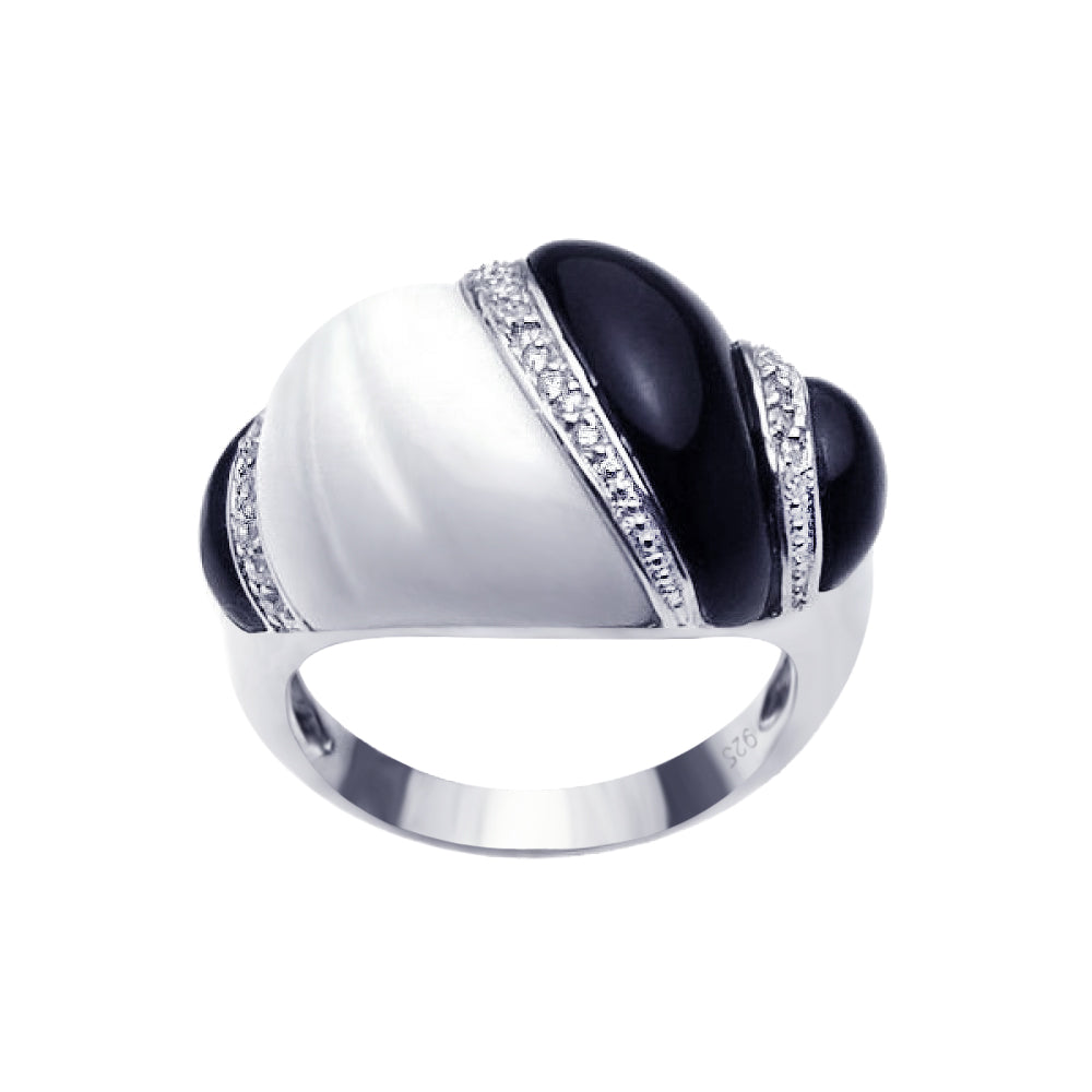 Closeout-Silver 952 Rhodium Plated Clear CZ Black and White Ring - BGR00184